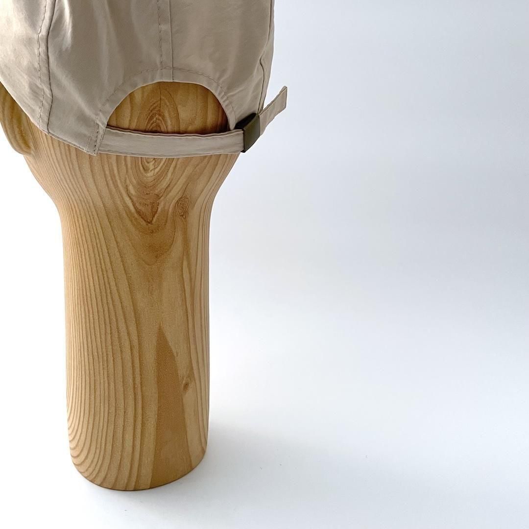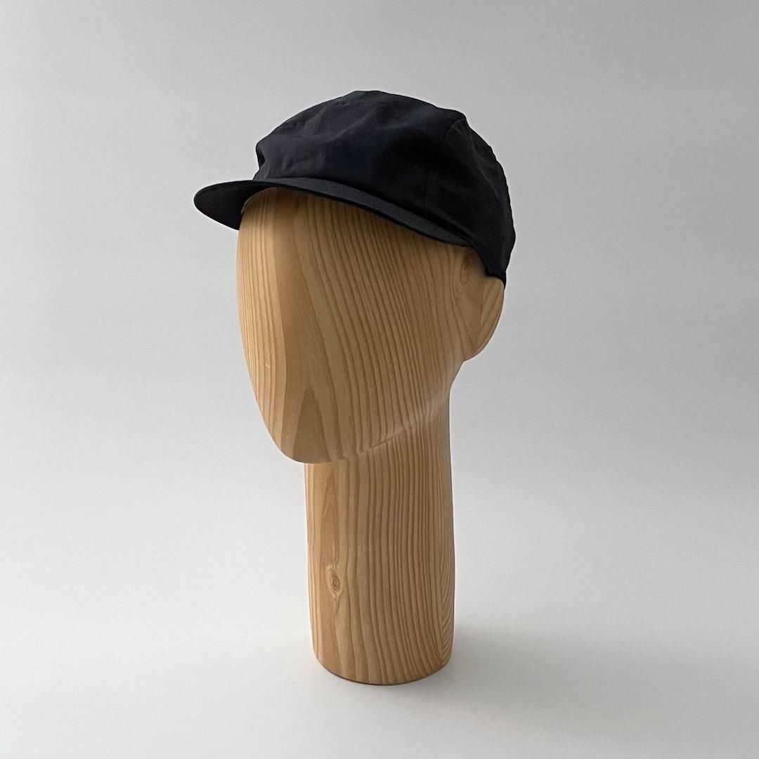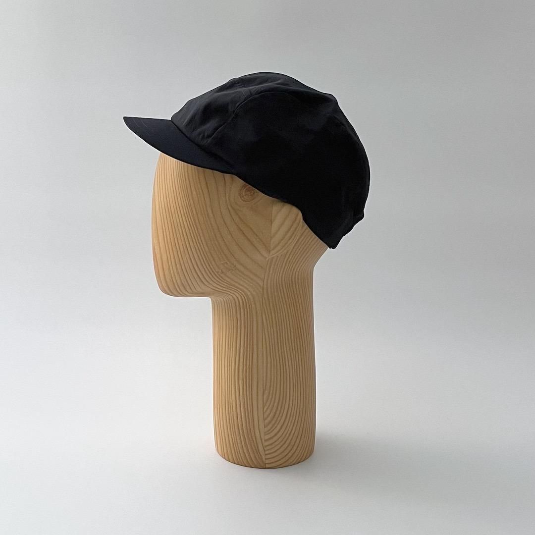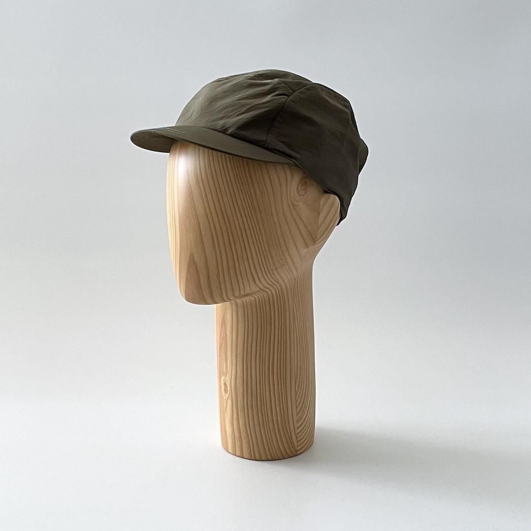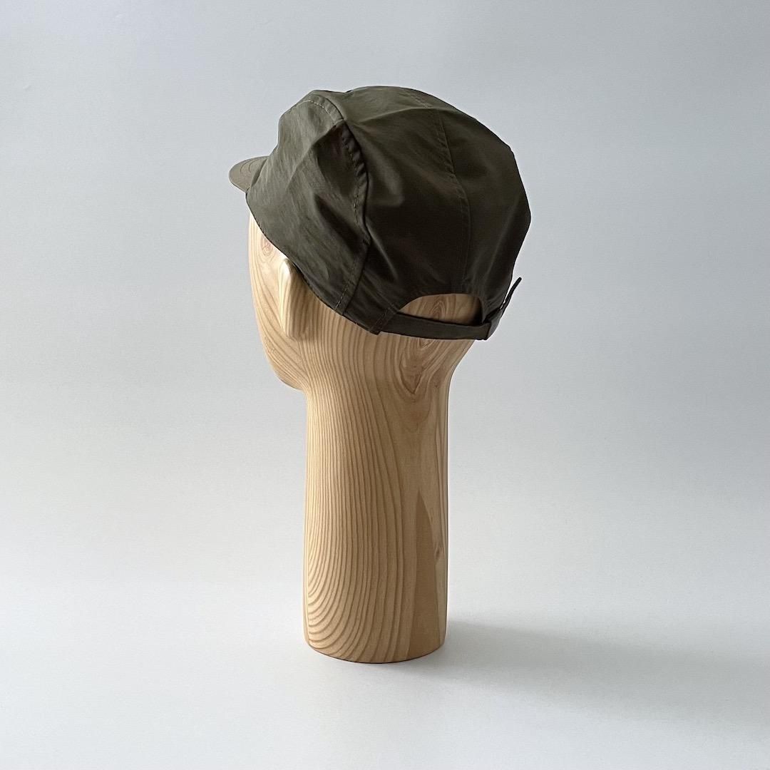 Sashikiオリジナルのジェットキャップです。 トップは1枚仕立ての裏無しで仕上げており、縫い代を折り伏縫いで仕上げることで軽やかな作りになっています。ツバは小さめのデザインでアウトドアなイメージは少し抑えていました。生地は撥水加工のあるコットンナイロンで小降りの雨にも対応していますのでバッグやポケットにサッと入れてオールシーズン使えるのが嬉しいです。(防水加工ではありません)